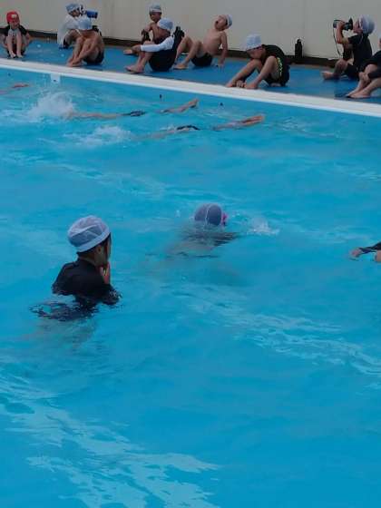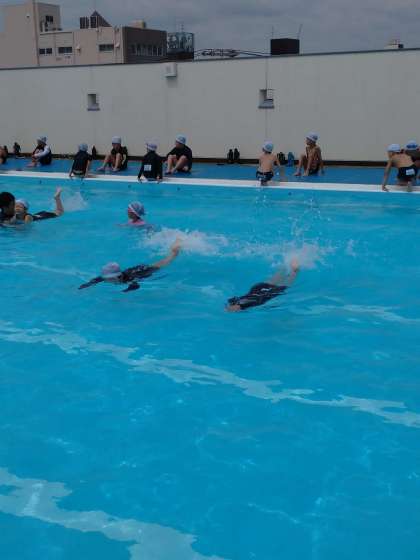 プールの学習では、ふしうき、けのび、バタ足の練習をしています。