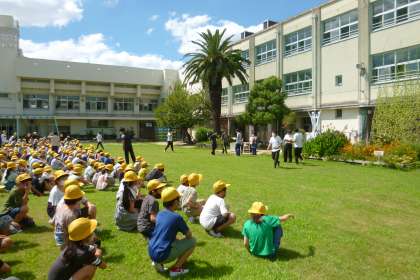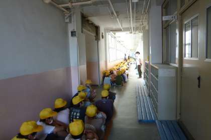 運動場に避難した後、大津波警報が発令され、津波の恐れがあるからという放送が入り、3階に避難しました。児童は、先生の指示をしっかりと聞き、慌てることなく落ち着いて行動していました。
