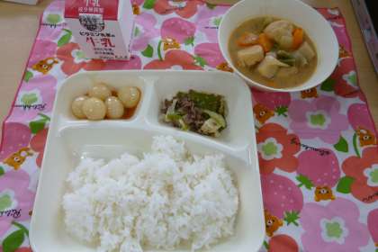 9/8 今日の給食 一口がんもとさといものみそ煮