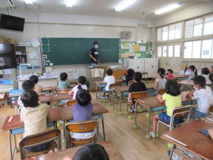 ネイティブスピーカーの先生に来ていただいて、楽しく英語活動をしました。