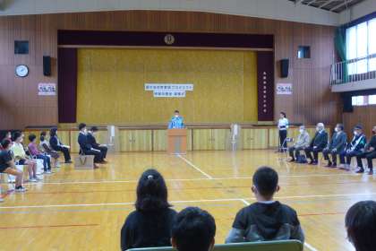 先日、4年生が、高齢者に向けた還付金詐欺被害防止のメッセージを、人感アナウンス機に吹き込むことに協力をしました。そして今日、東成警察より、子ども達に感謝状が贈られました。