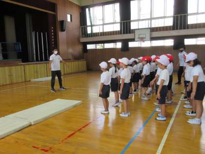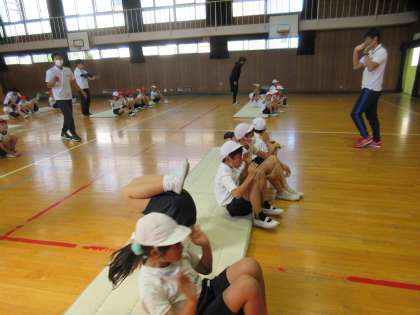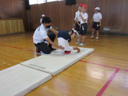 今日は、マット運動の前転と後転のコツを教えていただきました。