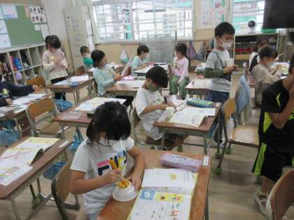 色を塗ったり、模様をつけたりしながら、楽しく活動しました。