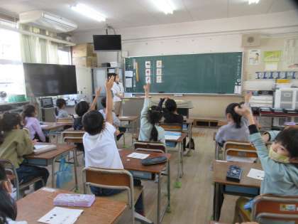 どちらが好きかをたずねると、ほとんどの児童が右側に手を挙げました。