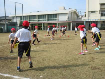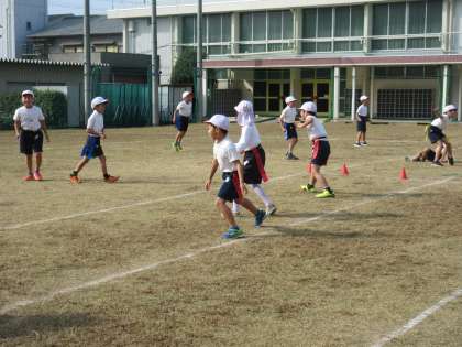 秋空の下、子ども達は元気いっぱいに走り回っていました。
