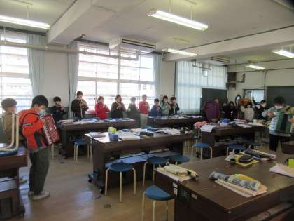 みんなでパートを交代しながら、いろいろな楽器にふれることが