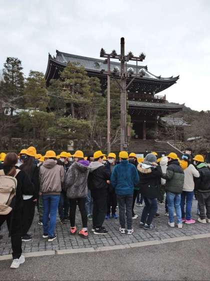知恩院の前でバスをおりました。あちらこちらに雪が残っていて、大喜び。
