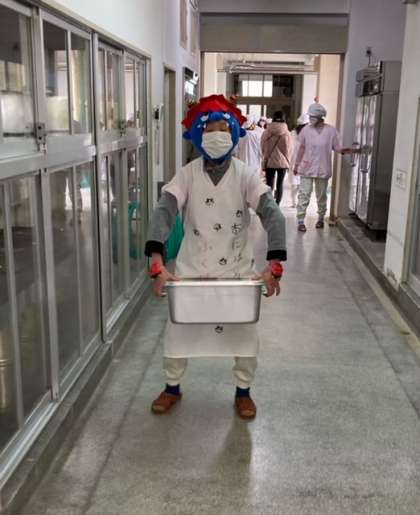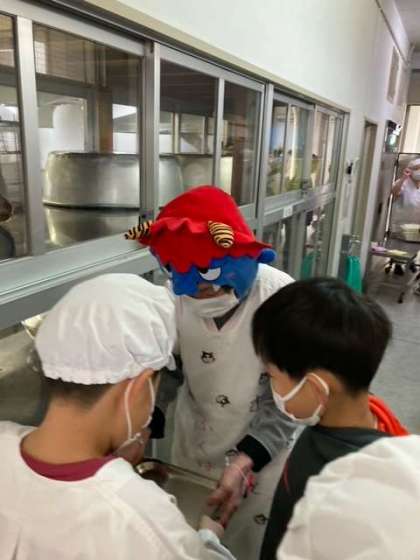 今日は節分。深江小学校では、今日は鬼さんから給食をいただきました。