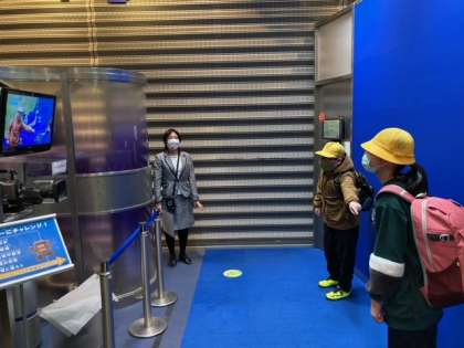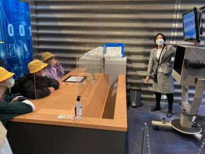 BKプラザ1階では、ニュースができるまでの様子を映像で教えてもらったり、実際にお天気キャスターやアナウンサーの体験をしたりしました。