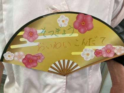 今日は、給食をいただきに行った子ども達に、お祝いメッセージのサプライズ。