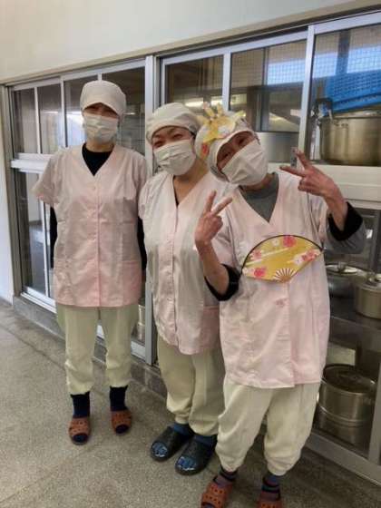 調理員さんからの、あたたかいメッセージとともに、給食を運ぶ子ども達でした。