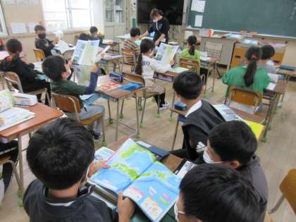 日本の中の位置や、気候、産業の特色など学習していきます。