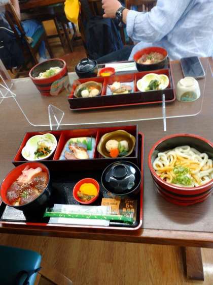 昼ごはんは、伊勢名物の伊勢うどんとてこねずしです。美味しくいただきました。