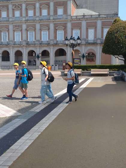 子ども達が楽しみにしていたスペイン村に着きました。集合写真をとってから、活動班にわかれました。