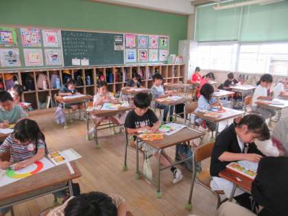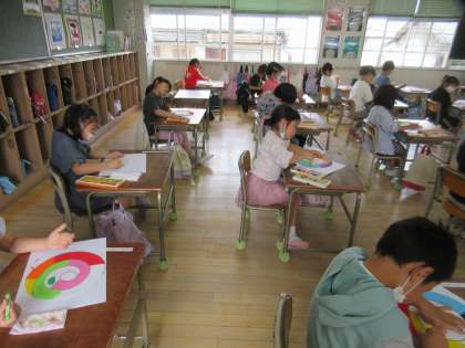 パスを使って、カタツムリのからをカラフルにぬりました。