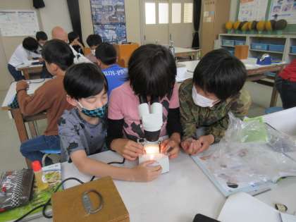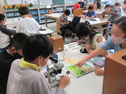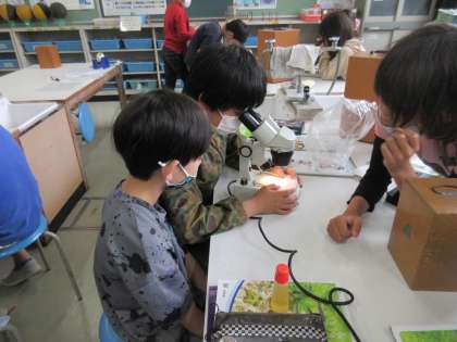 理科の学習で「かいぼう顕微鏡」と「双眼実体顕微鏡」を使いました。