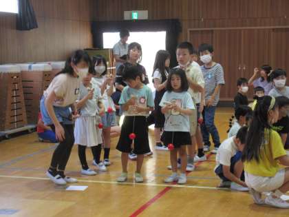けん玉委員会の児童が中心となって、けん玉集会が行われました。