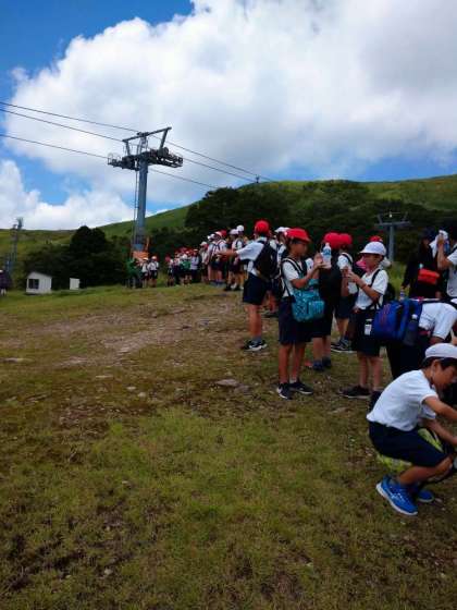 スポーツドリンクを手に登り始めました。草原を登っています。