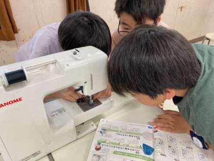 夏休み、深江小学校に新しいミシンが入りました。そのミシンをすぐに使えるようにするために、6年生が頑張ってくれています。