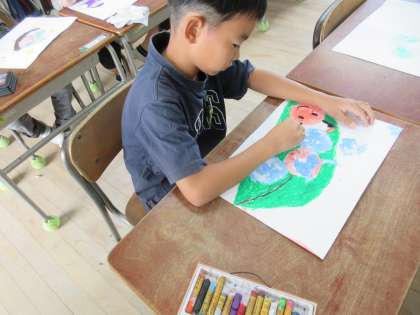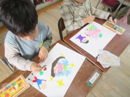 その円を○○に見立てて、画用紙で絵を書き足しました。