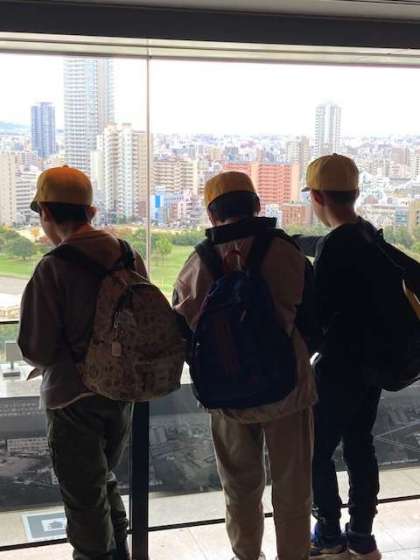NHKの後、歴史博物館の見学もしました。時間を決めて、それぞれに見学をした5年生。興味のある所では、静かに友達と学び合いをしている姿が見られました。昔の地図と窓から見える現在の様子を見ながら、「へぇ、こんなんやったんや、すごいなぁ」と景色をゆっくり眺める姿もありました。