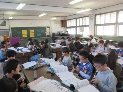 今日は、1組と2組の合同の音楽の授業です。