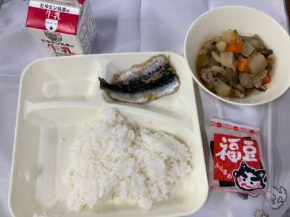 今日は「節分の行事献立」です。節分の日には、病気や悪い出来事を追いはらうため、「鬼は外、福は内」と言って豆まきをしたり、年の数だけ、いり大豆を食べたりする風習があります。