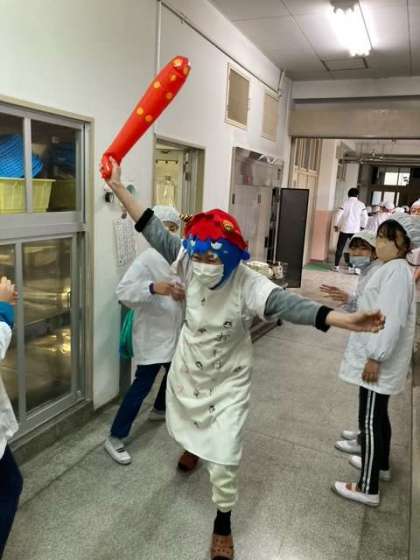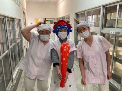鬼になってくれていました。びっくりする子どもがいれば、にこにこ笑って、給食を受け取る子、「おには外!ふくは内!」と声をかける子・・・。この日を楽しみに待っていた子もいました。