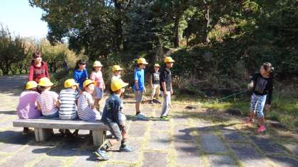 28日、鶴見緑地で深江っ子ウォーキングを行いました。縦割り班で協力しながら各ポイントを目指しました。各ポイントでは、担当の先生とゲームをしたりクイズをしたりしました。