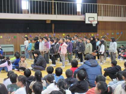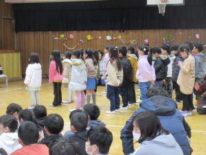 それぞれの学年ごとに、メッセージと歌やリコーダーの演奏を