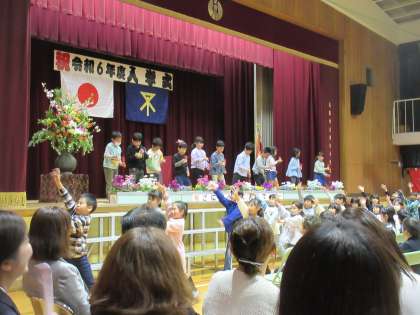 入学式では、地域の方や保護者の方々に見守られ、少し緊張した