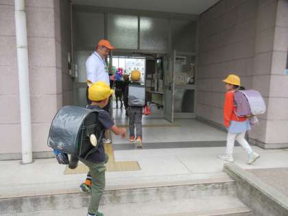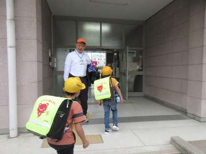 朝の登校時間に、玄関で子ども達を迎えてくださいました。
