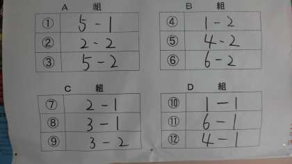 毎年恒例の11月20日に行われるクラス対抗ドッジボール大会の予選リーグの抽選会が行われました。学年差で逆手で投げるとかハンデが与えられ予選リーグは各クラス2試合ずつ行われます。