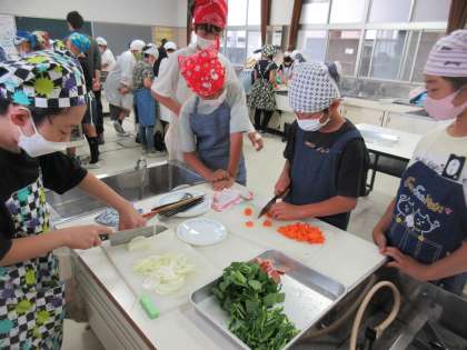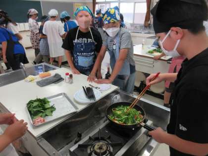 野菜を切って、サラダ油で炒め、塩こしょうで味付けです。