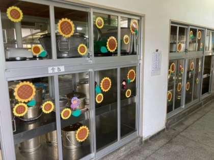 それだけではありません。給食を取りに来たみんなが、季節を感じたり、笑顔になれるように、より元気になるようにとたくさんのアイディアで楽しませてくださっています。今日は、今の給食室の様子を少しですが、ごらんください。