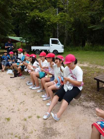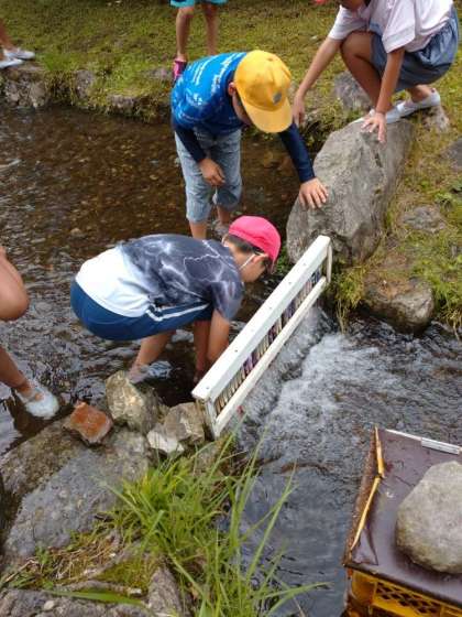 山から流れているきれいな川に入って魚を捕まえました。魚はアマゴです。