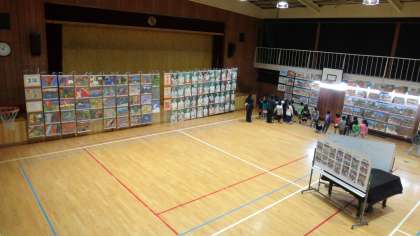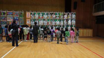 27日の午前中は各学年時間を区切って絵画展の鑑賞をしました。各学年児童の力作を子どもたちはしっかり鑑賞していました。絵画展の保護者や地域の皆様の鑑賞は27日の午後と28日、土曜授業の午前中です。ぜひ学校へお越しください。