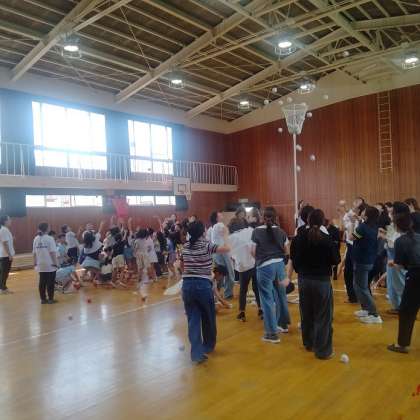 1年生は本日の5時間目に学年集会で、保護者のみなさんと「玉入れ大会」を行いました。