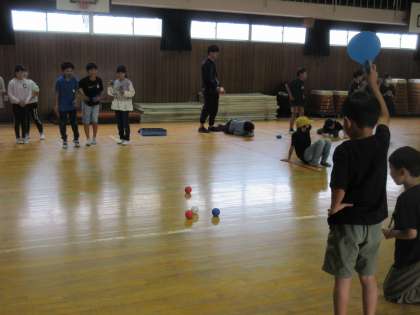 赤玉チームと青玉チームに分かれて、玉を転がします。