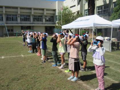 太陽メガネを使って、太陽を観察しました。