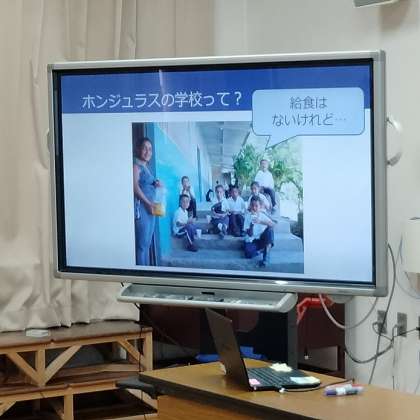 11月26日(火)に東成区役所の国際理解教育推進事業の一環で青年海外協力隊員としてホンジュラスで活動されておられました西山さんを講師にお迎えし、4年生を対象にJICA出前講座が行われました。最初はホンジュラスという国名すら知らなかった子どもたちも、西山さんからホンジュラスの人々のくらしや、ホンジュラスの学校と日本の学校との違いなどのお話を聞いているうちに目をランランと輝かせて発表したり質問したりしていました。