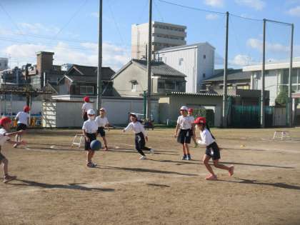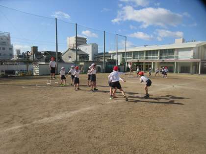 体育科では、ゴール型のゲームとしてポートボールをしています。
