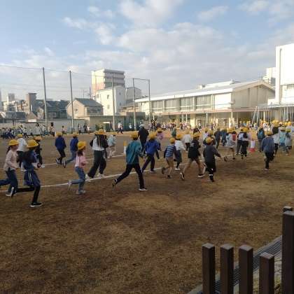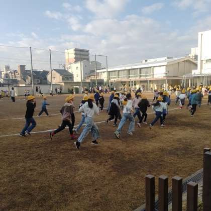 今週と来週の2週間、朝の時間帯に全校児童が運動場でかけ足をします。