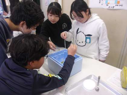 とけ方に違いがあるかを予想を立て、実験して確かめました。