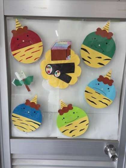 給食室のかわいい壁の飾りが、おにになっています。明後日は節分。4日の給食には節分献立が出ます。楽しみにしていてくださいね。