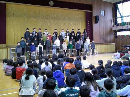 6年生の卒業をお祝いする会が、体育館で行われました。