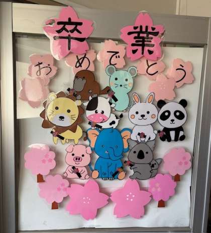 給食室も、卒業のお祝い掲示に変わりました。6年間おいしくいただいた給食。あと6回。どのメニューが好きでしたか?ベスト3は何かな?残りの給食にそのメニューが出てくるとうれしいですね。6年間の感謝の気持ちも込めておいしくいただきましょうね。