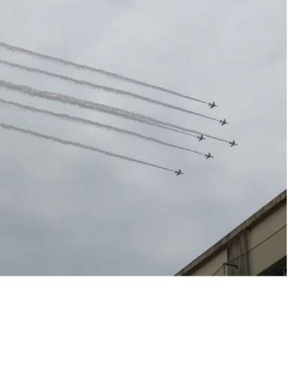 4月13日(日)の大阪・関西万博開幕に向けたブルーインパルスのテストフライトが4月10日(木)に行われ、当日のフライトコースが深江小学校のほぼ真上(やや西より)だということがわかりました。