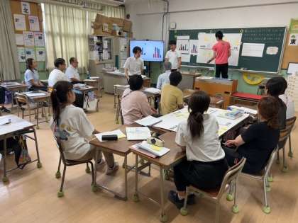 3年生の授業を参観し、放課後に校内教員研修会を持ちました。どのように授業力を高め、子どもたちの学力向上につなげるか議論しました。