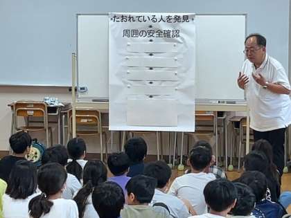 6年生は、心肺蘇生法について教頭先生に教えてもらいました。